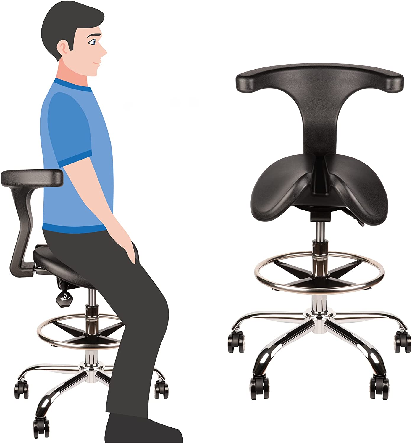 Petkaboo Ergonomic Saddle Stool Rolling Adjustable Saddle Chair With Back Support For Posture Improvement Split Seat Style Alleviate Hip And Back Pain Salon Massage Dental Lab Home Office Student Walmart Com