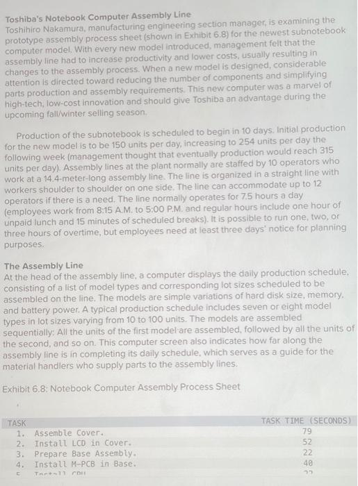 Toshiba S Notebook Computer Assembly Line Toshihiro Chegg Com